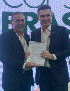 O presidente nacional do Instituto de Arquitetos do Brasil (IAB), Odilo Almeida Filho, entregou nesta segunda-feira (10) ao Ministro das Cidades, Jader Barbalho Filho, três documentos com contribuições da arquitetura e do urbanismo à COP30, em evento na Zona Azul.