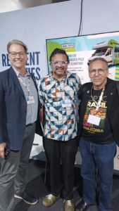Ilya Azaroff (Estados Unidos), Rui Leão (China) e Odilo Almeida Filho (Brasil) durante encontro na Zona Azul da COP30.