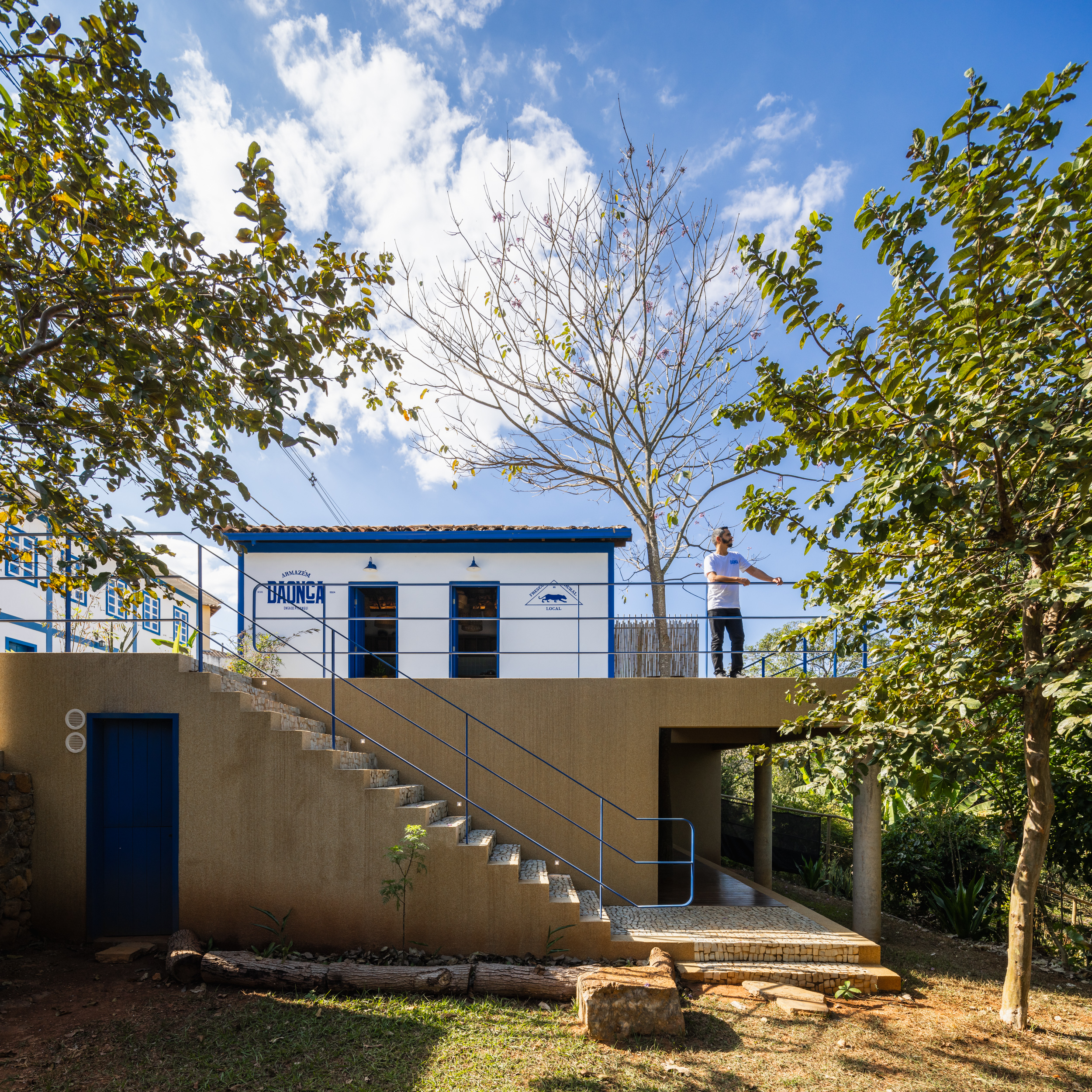A requalificação do armazém em Onça do Pitangui intervém em um edifício do início do século XX. O projeto restaura e revela as estruturas originais de madeira e tijolo, recuperando técnicas tradicionais e valores construtivos locais. Uma nova arquitetura, discreta e precisa, atua como pedestal para o volume histórico, abrigando funções de apoio e ampliando sua vocação pública. Entre o antigo e o novo, propõe-se uma convivência sensível entre memória, uso e paisagem urbana.