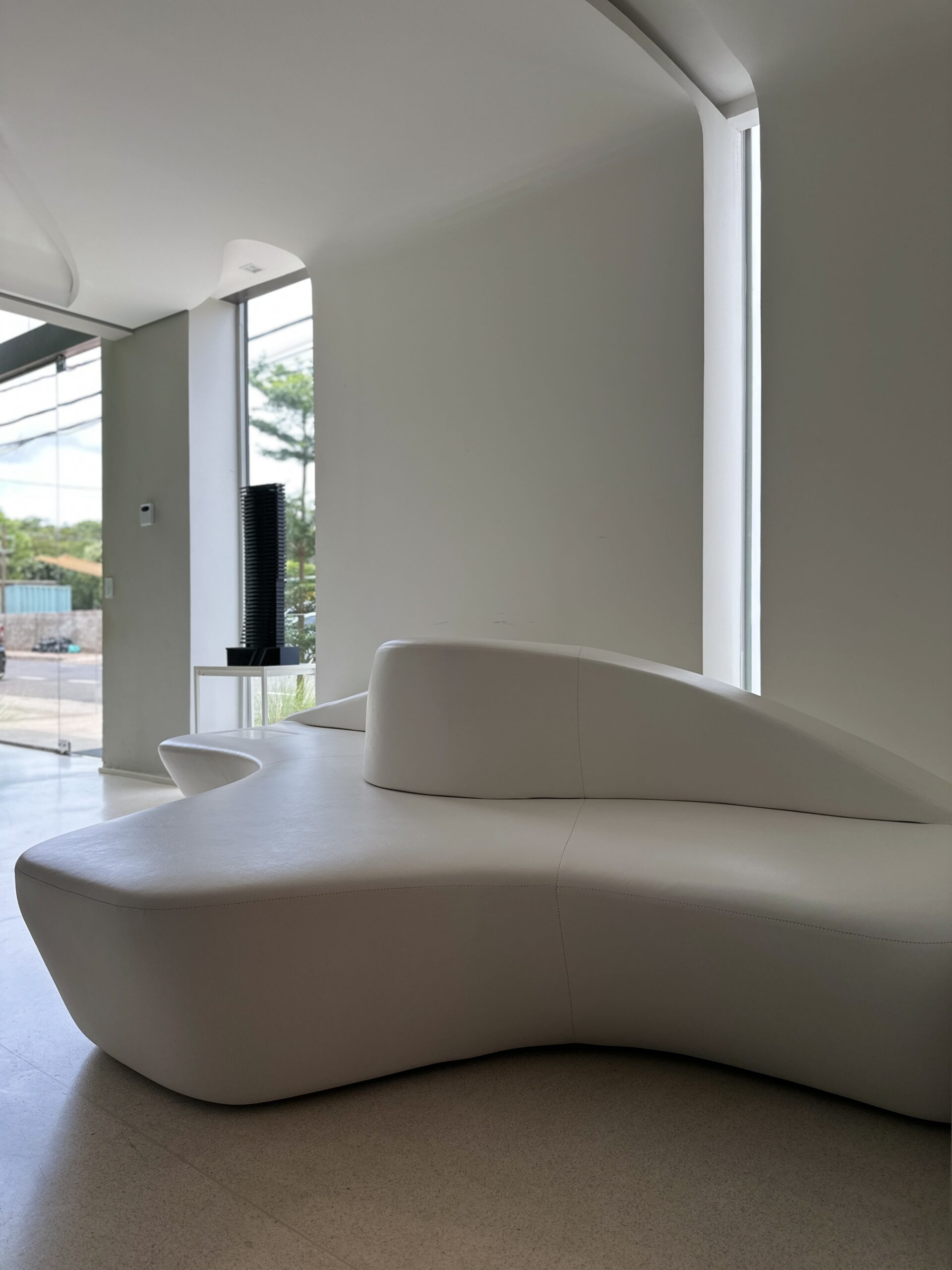 A curva, aqui, torna-se símbolo de contemporaneidade e reconstrução, abandonando a dureza geométrica em favor de uma forma adaptativa, capaz de dialogar com luz, paisagem e espaço. O rigor técnico do processo não se impõe visualmente, mas se revela na naturalidade do conjunto e na clareza construtiva.