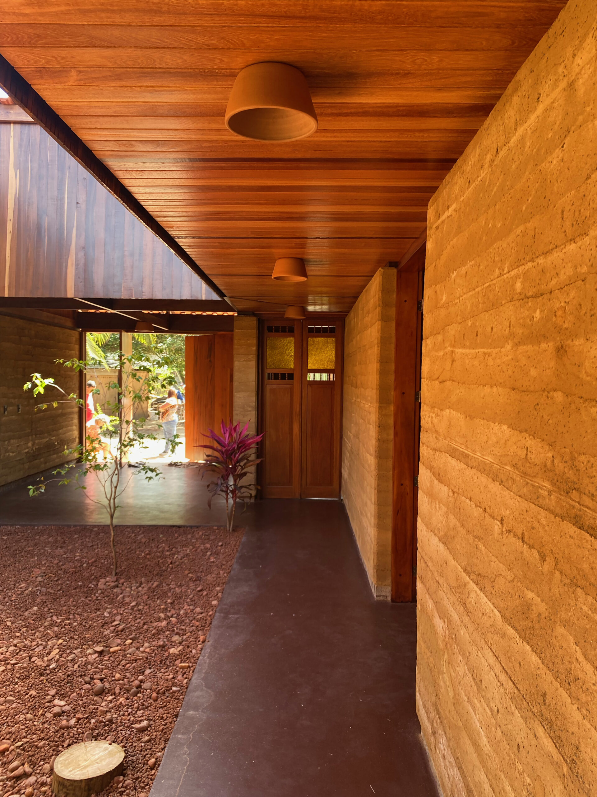 Nas últimas décadas o uso da taipa de pilão vem crescendo em diversos países, inclusive no Brasil. Uma equipe local foi formada para a execução das paredes de taipa realizadas in situ, com emprego de formas metálicas. Essa experiência foi enriquecedora para todos aqueles que participaram da obra, fiéis do resultado. Também proporcionou uma aula prática de bio construção, em colaboração com professores da FAUFBA.