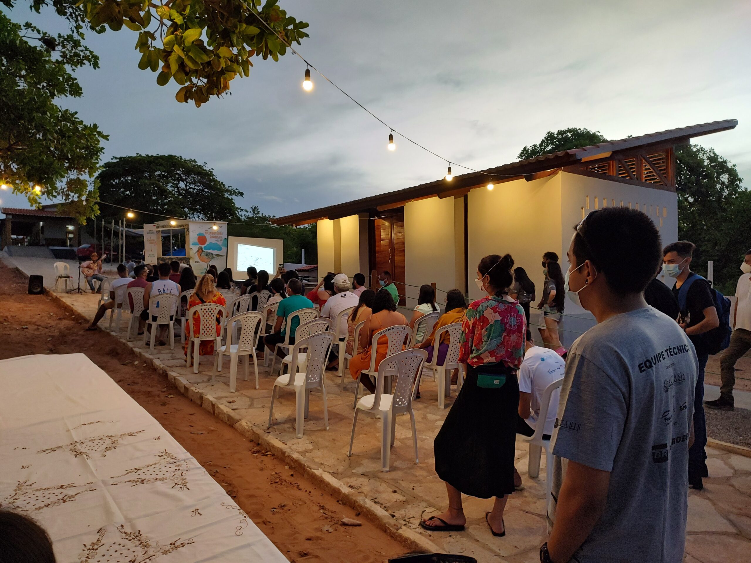 Em atividade há mais de 30 anos, a ONG Aquasis vem construindo gradualmente o Centro de Visitantes Banco dos Cajuais, localizado na praia de Picos, em Icapuí, no litoral leste do Ceará. A demanda por um espaço capaz de receber escolas, pesquisadores, população local e turistas impulsionou o desenvolvimento do projeto, que desde 2020 vem sendo moldado por condições de orçamento restrito, mão de obra limitada e incertezas impostas pela pandemia. Esse contexto exigiu soluções alinhadas à cultura construtiva local, reforçando a compreensão da arquitetura como bem cultural e como expressão dos modos de fazer da comunidade.