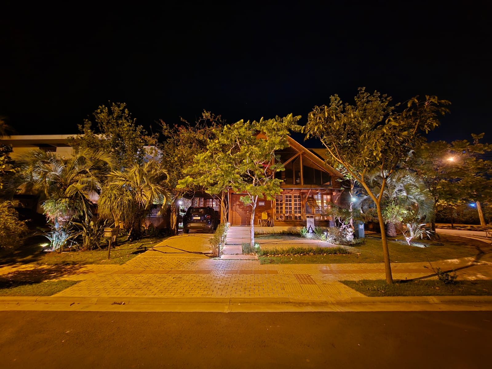 Os espaços são articulados por núcleos complementares. A área frontal organiza os acessos e cria um recanto de contemplação voltado ao pôr do sol. A lateral abriga o Jardim do Infinito, onde água, sombra e reflexo constroem uma experiência sensorial contínua. Nos fundos, o projeto privilegia o convívio familiar, integrando mesa sob a jabuticabeira, pisos drenantes, fogo de chão e um shed garden com hortas elevadas e captação de água da chuva.