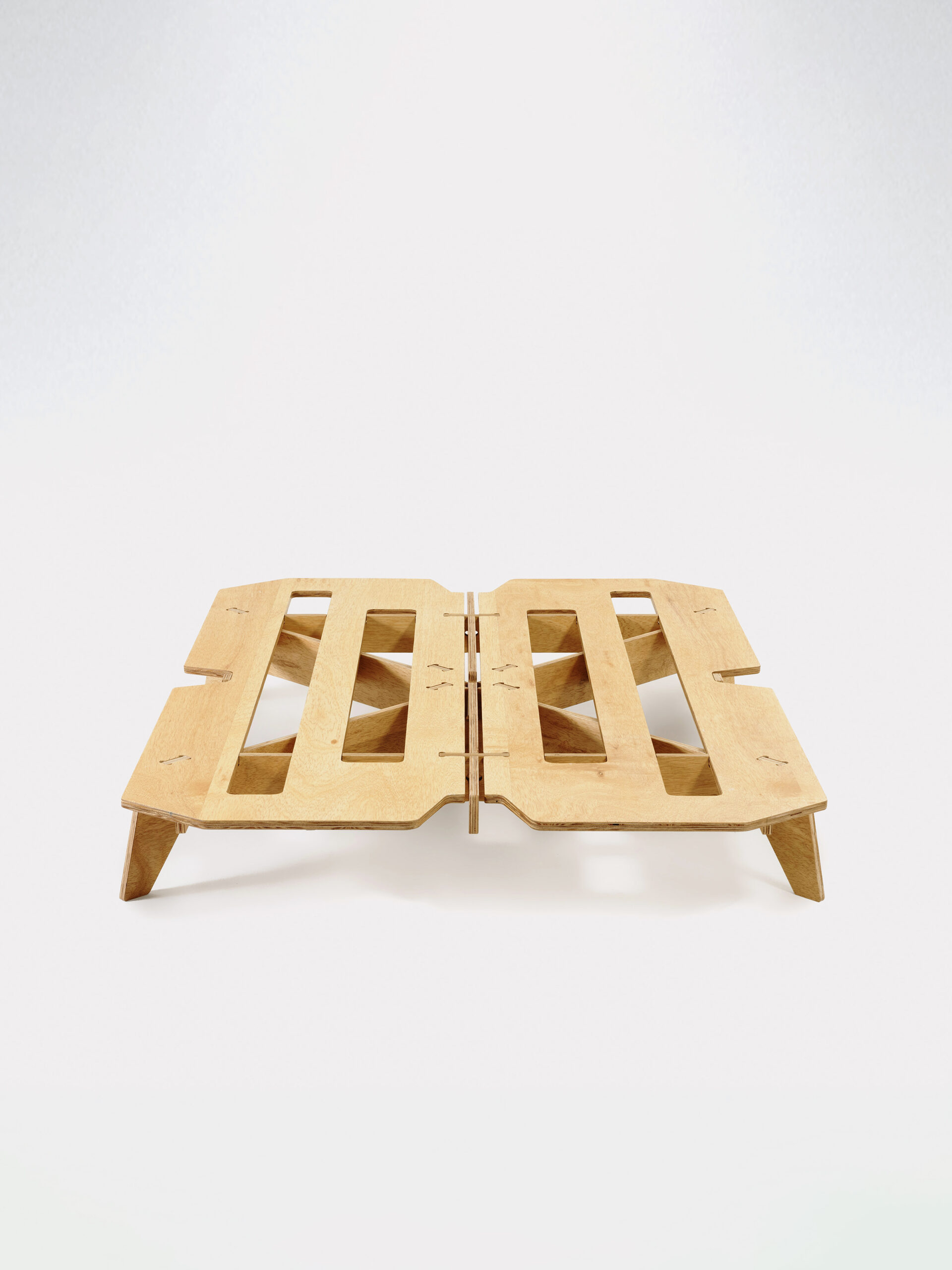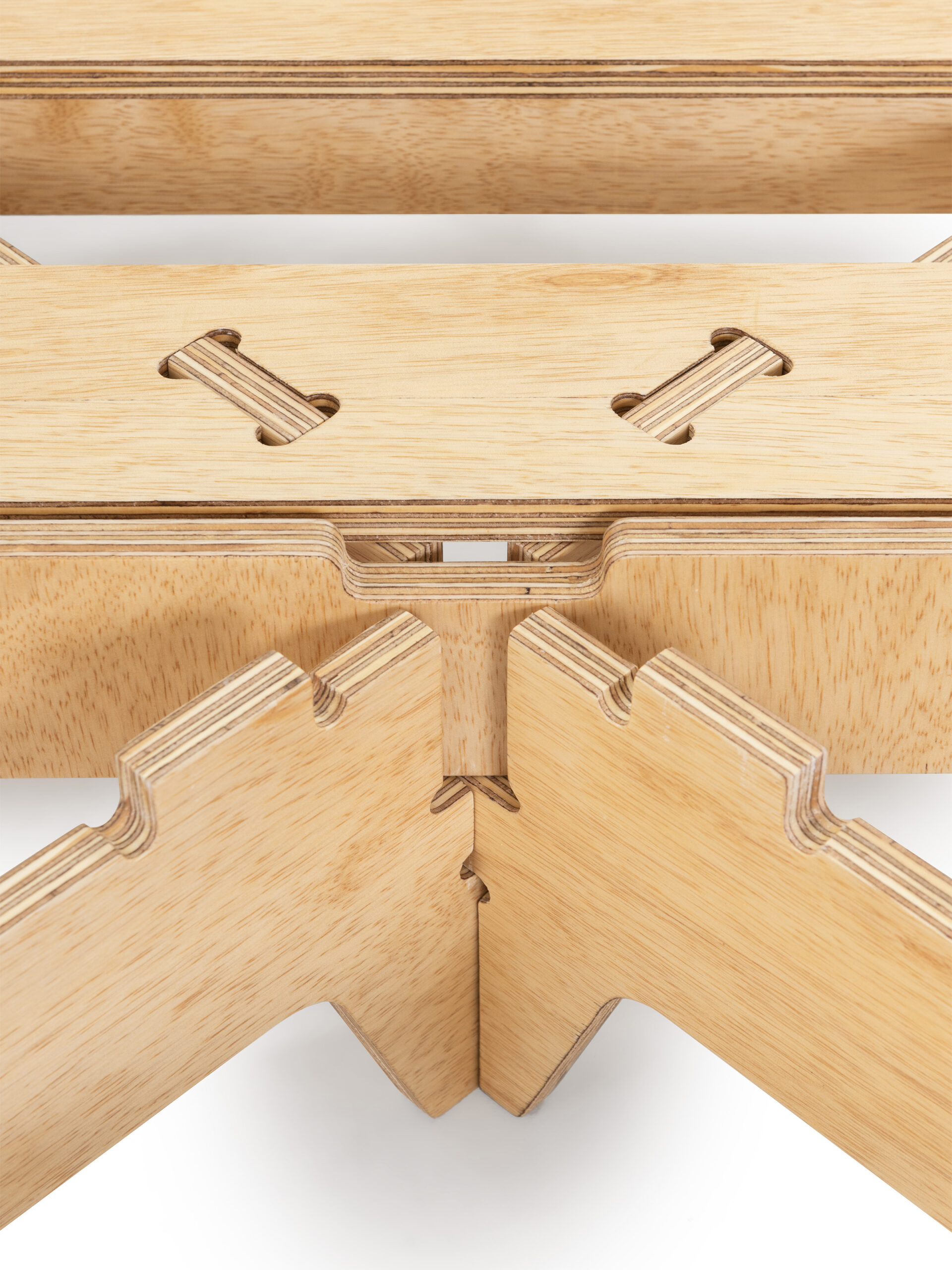 A partir de uma única chapa padrão de compensado naval, com 160 x 220cm, pode ser fabricada uma cama de casal ou duas camas de solteiro. Essa versatilidade otimiza o uso do material e reduz o desperdício. A escolha do compensado naval garante resistência à umidade e maior durabilidade, características fundamentais em contextos de vulnerabilidade e exposição a intempéries. O resultado é uma estrutura leve, robusta e funcional, pensada para atender de forma eficiente tanto às necessidades imediatas de acolhimento quanto ao uso prolongado após o período emergencial.