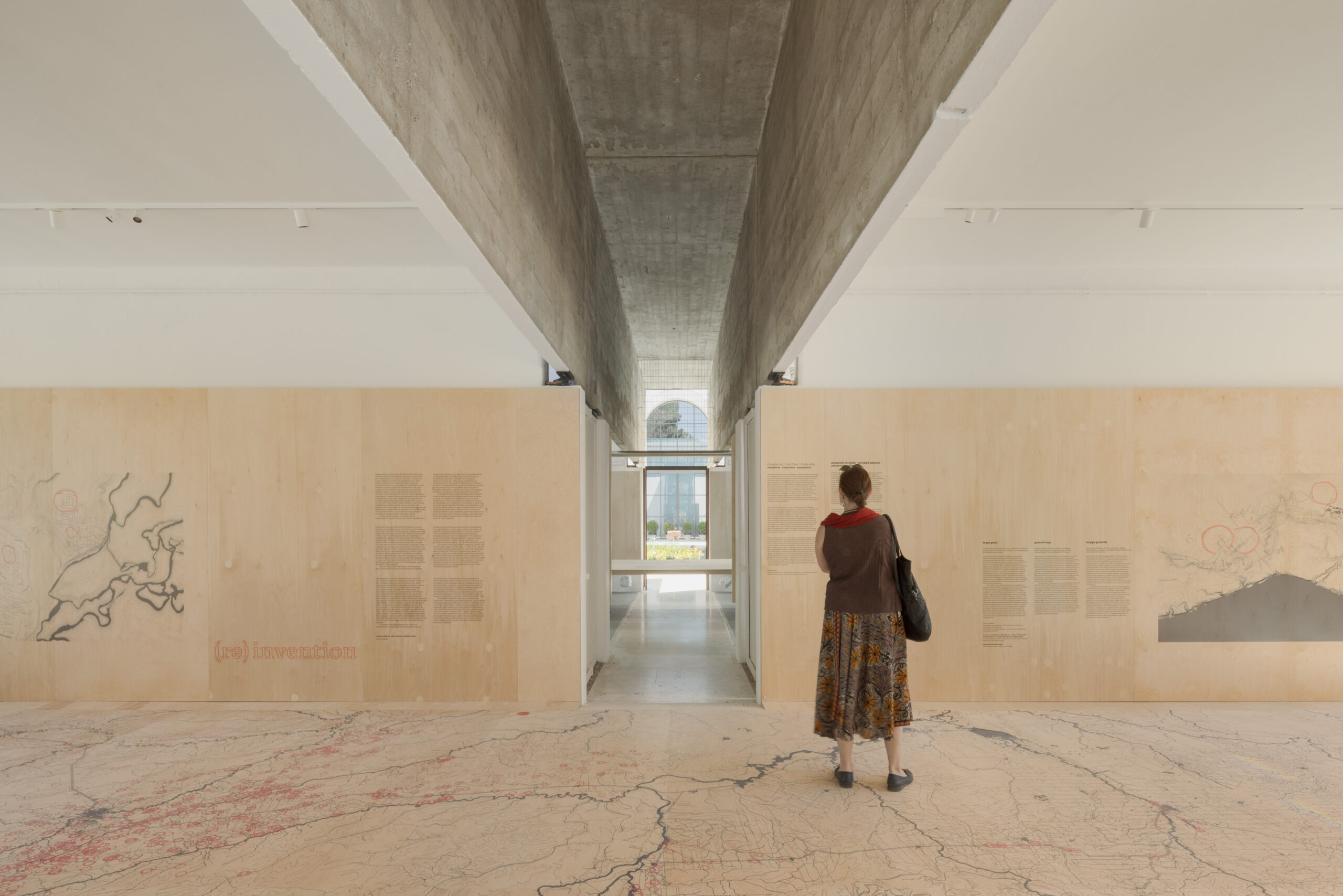 A exposição (RE)INVENÇÃO: Pavilhão do Brasil na Bienal de Arquitetura de Veneza propõe uma leitura crítica e propositiva da arquitetura brasileira a partir de uma narrativa espacial estruturada em dois atos, articulados por instalações que exploram equilíbrio, leveza e uso mínimo de elementos construtivos. O projeto utiliza a própria estrutura do Pavilhão do Brasil como suporte para reconfigurar seus espaços internos, ativando o edifício como parte integrante da exposição.