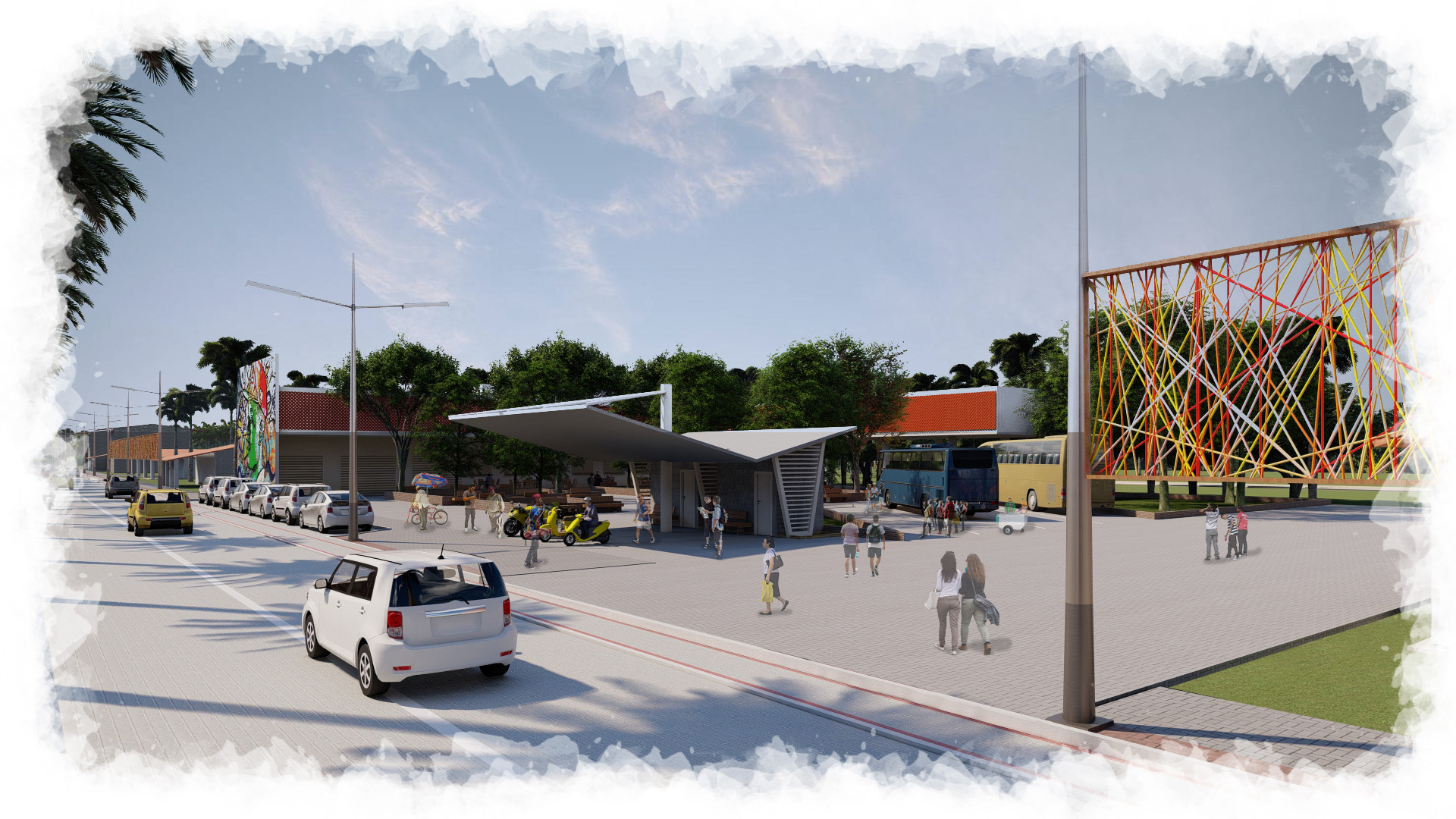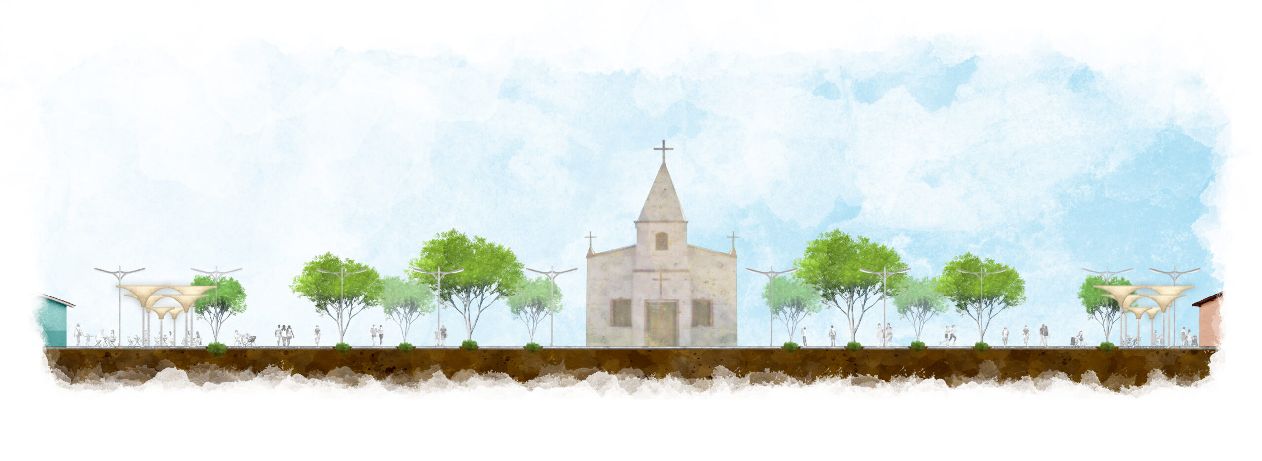 O projeto de Requalificação Urbana de Paraipaba nasce como resposta direta às emergências climáticas e à necessidade de reposicionar a cidade dentro de um modelo contemporâneo de desenvolvimento urbano sustentável. Paraipaba, apesar de seu potencial singular, tem sido tratada historicamente como cidade de passagem, marcada pela predominância do automóvel e por espaços públicos fragmentados. A proposta inverte essa lógica, articulando um plano que coloca a vida urbana, o clima e o território no centro das escolhas projetuais.